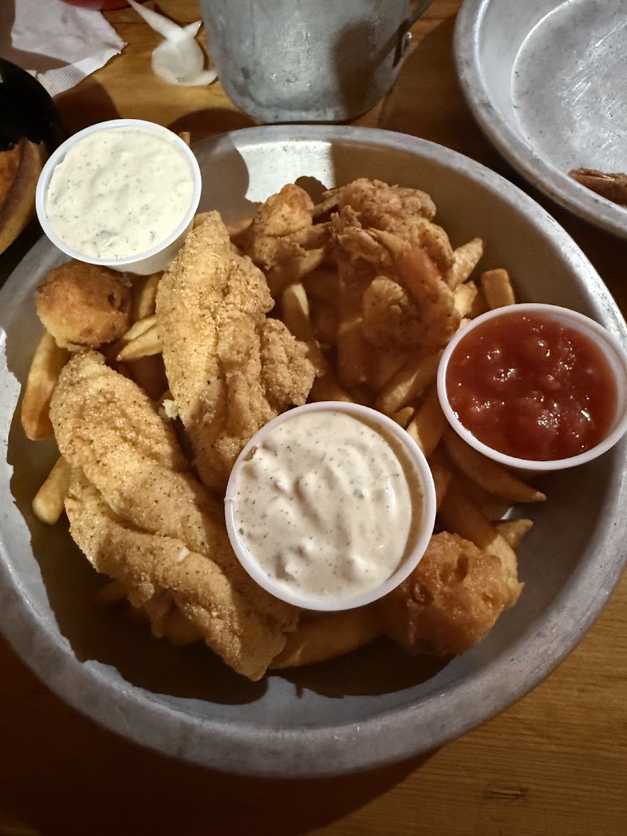 Cock of the Walk in Nashville, TN is a popular American restaurant known for its flavorful fried catfish and chicken dishes. With a rustic country vibe and tin cups and plates, it offers a unique dining experience. Customers rave about the perfectly seasoned and fried catfish, crispy hush puppies, and delicious sides like coleslaw and fries. The menu also includes a variety of a la carte options and keelboat specials for sharing. Despite some mixed reviews about service, the overall consensus is positive, with patrons recommending this spot for a satisfying meal, especially for catfish lovers.